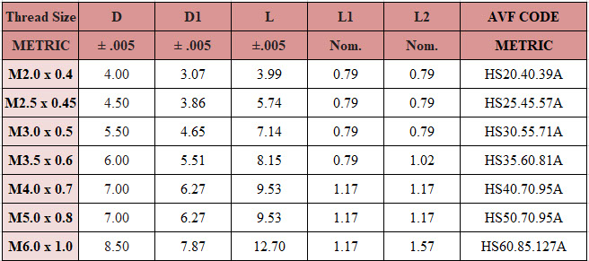 Our Threaded Inserts can be order in Metric and Inch . We supply all kinds of Inserts with variety length for the industry.