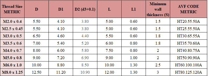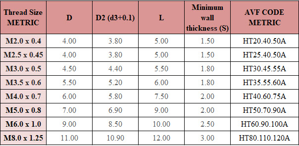 Our Threaded Inserts can be order in Metric and Inch . We supply all kinds of Inserts with variety length for the industry.