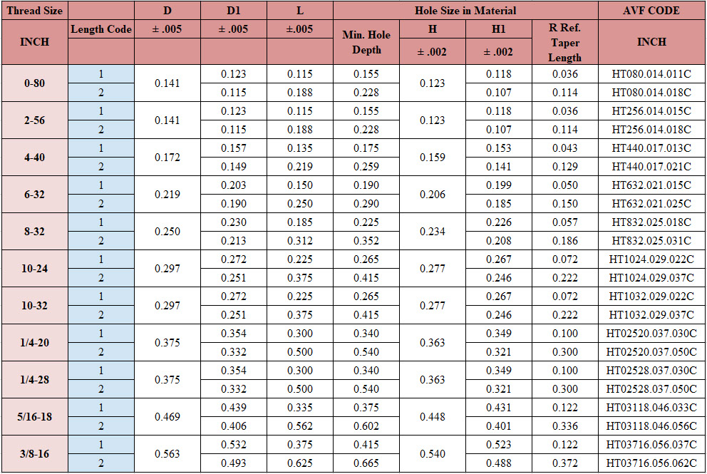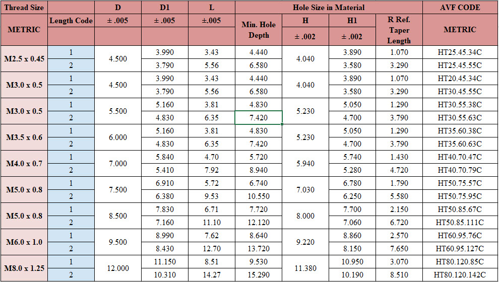 Our Threaded Inserts can be order in Metric and Inch . We supply all kinds of Inserts with variety length for the industry.