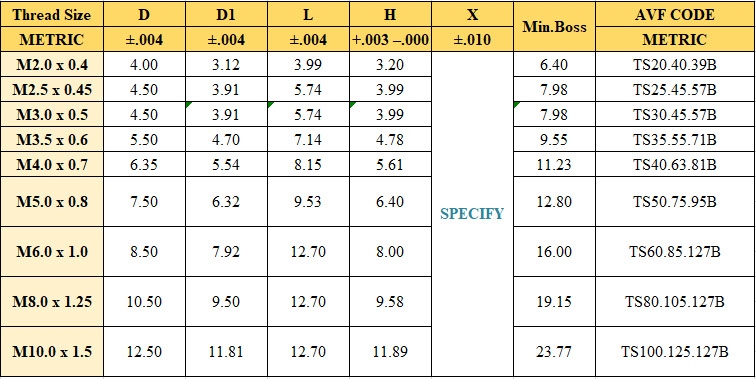 Our Threaded Inserts can be order in Metric and Inch . We supply all kinds of Inserts with variety length for the industry.